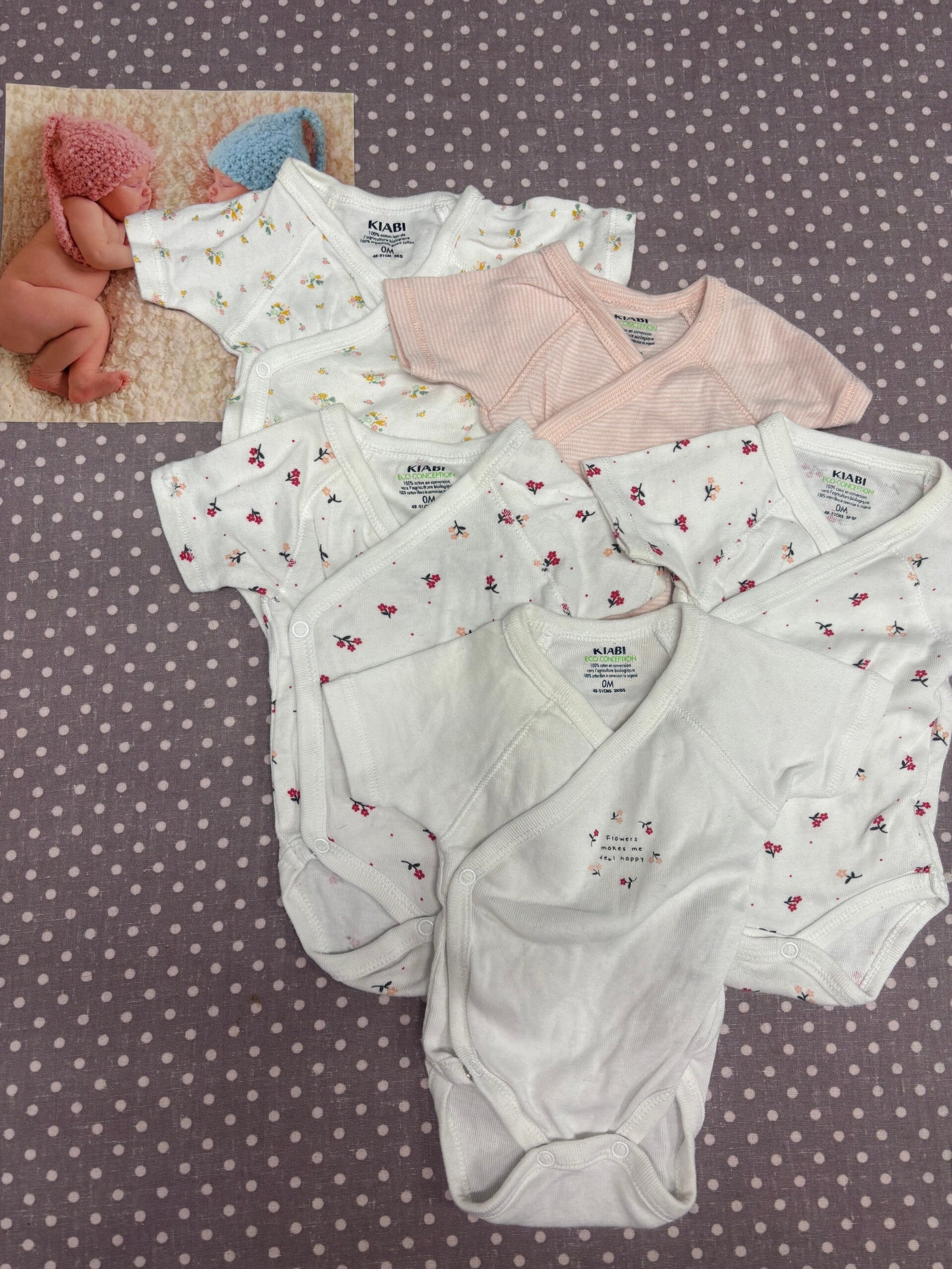 Naissance lot de 5 bodies manches courtes cache coeur KIABI